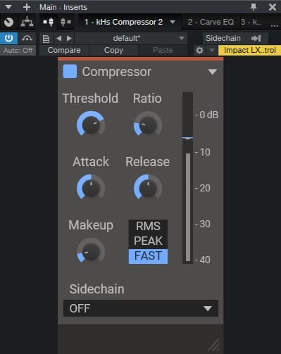 Set a slow attack, between 30 and 100 ms, so your beat still hits hard, and adjust the release to match the rhythm of your tune. If the release is too fast, the sound will 'pump'; if it’s too slow, the track may sound dull. Try until you reach the sweet spot, and trust your ears.